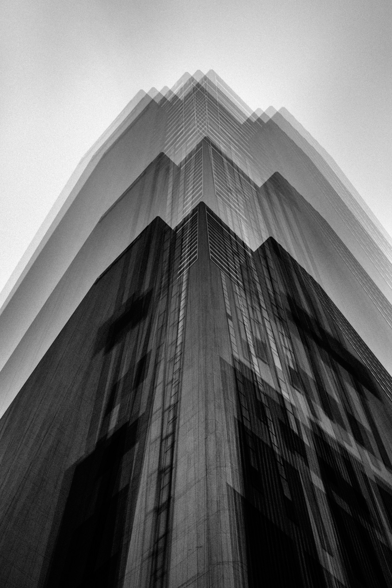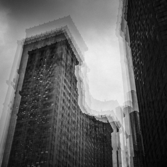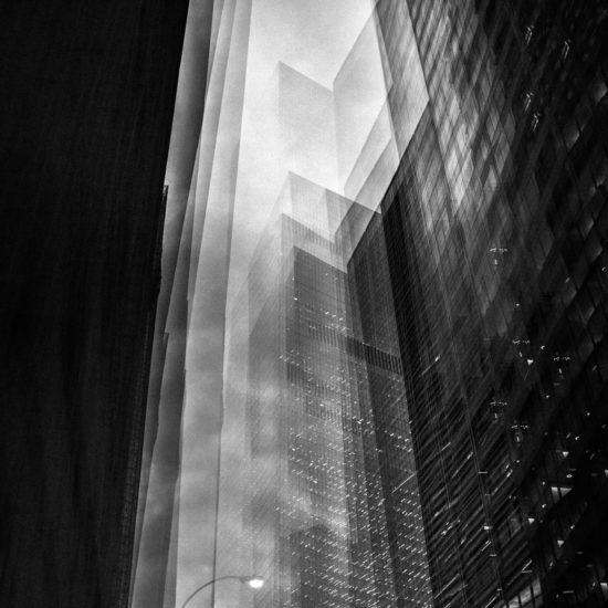 I palazzi così fotografati si sdoppiano e moltiplicano in base al numero delle esposizioni, perdendo la dimensione realistica diventano corpi astratti, monoliti enigmatici, vibranti di energia.